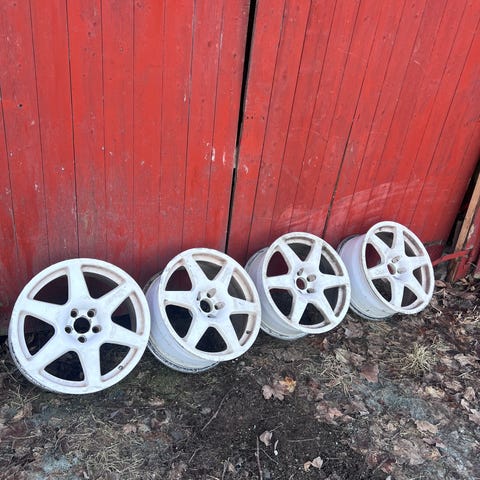 Godt brukt og blitt kantkjørt. Gode sommerdekk.
