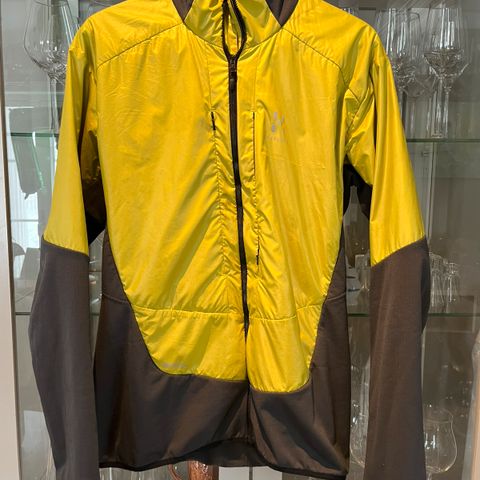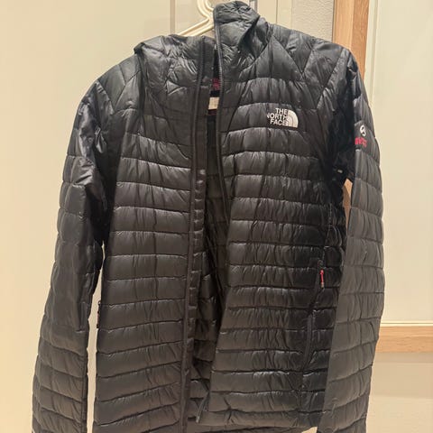 The North Face Summit Series jakke i størrelse L for menn. Jakken har en grønn farge med lysegrønne detaljer. Den er designet for ulike sportstyper og utendørsaktiviteter. Jakken har hette og glidelåslommer foran.