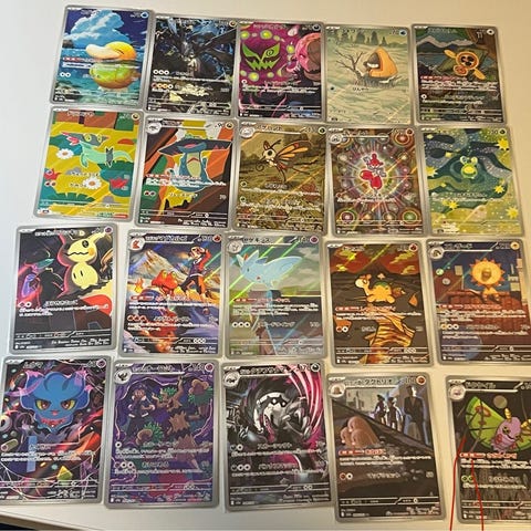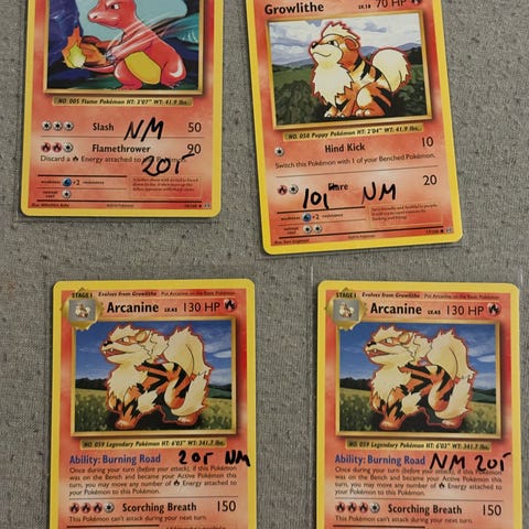 Samling av Pokémon kort fra ulike serier og utgaver. Kortene inkluderer forskjellige Pokémon med varierende egenskaper og illustrasjoner. Egnet for samlere og spillere av Pokémon kortspill.