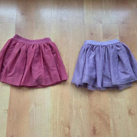 2 POMPdeLUX skjørt i størrelse 146- 152, et tyllskjørt som er sennepsgult og et jeansskjørt, selges samlet 100kr