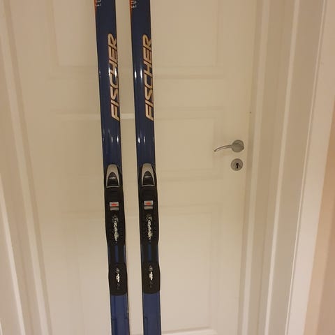 Godt brukte smørefri ski, lengde 190 cm, med skisko som passar til bindinga. Står størrelse 42 i skoa, men eg meiner dei passar betre til 40-41.