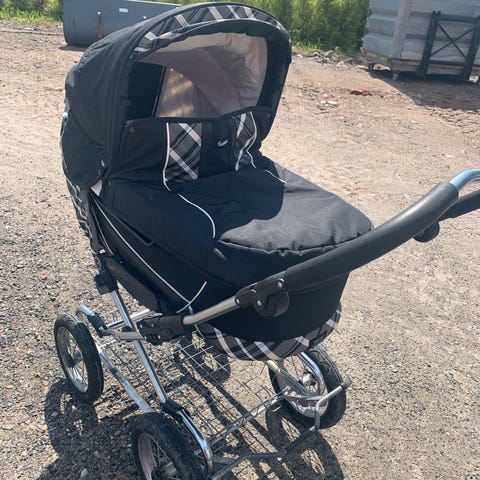 Pent brukt Emmaljunga vogn. Har ett lite hull i kallesjen og mangler en knapp men det har ingenting å si for bruken. Bagdel og sportsdel inkludert. Selger med ekstra regntrekk, myggnetting og fottrekk til vogna.