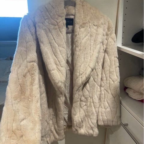 Vintage pelskåpe selges fordi jeg har for mange jakker. Den har en A-form og litt korte ermer. Jakken lukkes med hemper. Passer en xs-s til m, kommer an på ønsket passform. Pelsen er litt tynn noen steder, men dette synes ikke så godt da det er fargespill i pelsen. Fôret inni er løst noen steder, men dette kan man sy lett for hånd. Den øverste hempen er borte, men de andre funker som de skal så jeg har ikke opplevd det som et problem.