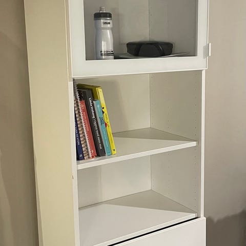 Praktisk Bestå hylle fra IKEA som ikke tar mye plass, men som har mye lagringsplass. Fem hyller medfølger.