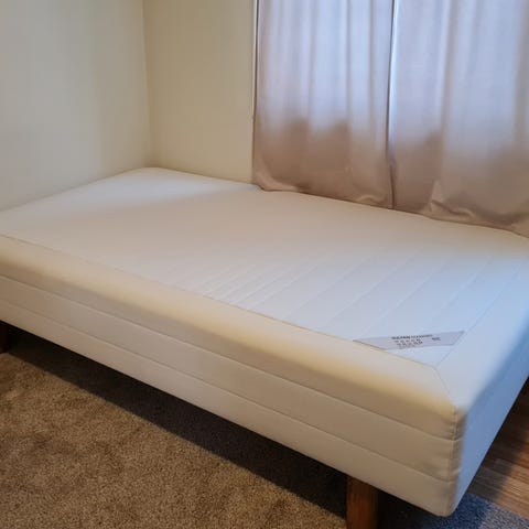 Selger en rammemadrass (120x200), den ble kjøpt i sommerferien 25 på bohus. Overmadrass ikke inkludert. Den må hentes, sender adresse ved interesse.