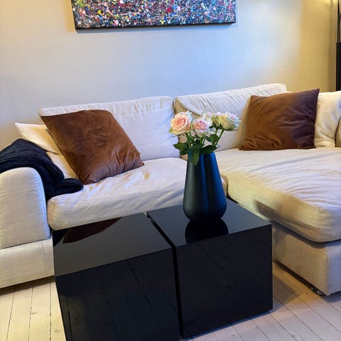Lett å skru av bena for frakt ( trenger ikke skrujern). og lett å skyve ut sidene.