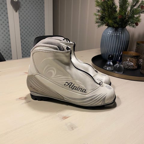 Alfa Linkstøvler skisko med snøring. Skiskoene har en kombinasjon av svart og rødt materiale med hvite lisser og såler. Egnet for bruk i vinter- og skiforhold.
