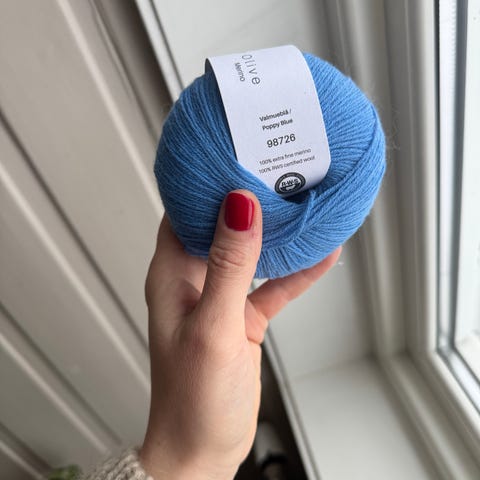 Har 7 nøster KFO merino i fargen sand. Det ene nøstet er såvidt påbegynt.