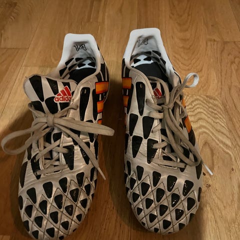 Adidas Predator fotballsko med str 38 1/3, i fargene svart og rosa. Skoene er såvidt prøvd og framstår som nye. Tf knotter for bruk på kunstgress/grus.