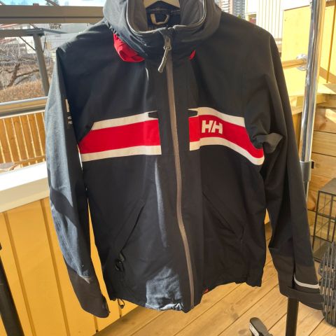 Helly Hansen seilerjakke/vindjakke svart og hvit med refleksdetaljer.