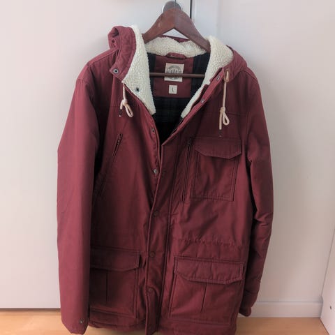 Mørk blå god og varm jakke med 6 lommer. Hentes eller kan sendes mot porto