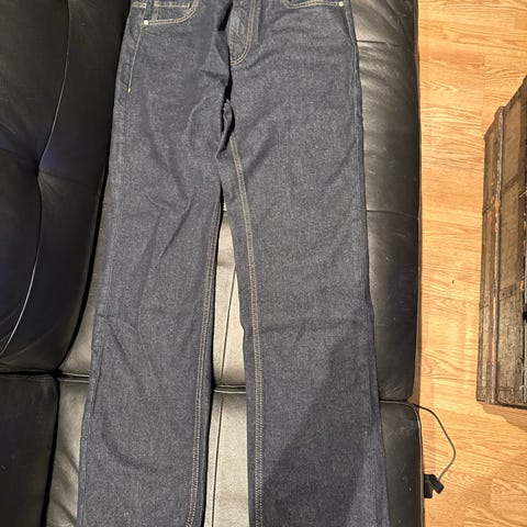 Pen blåmelert bukse - slim fit - str 33/32. Tilsv M