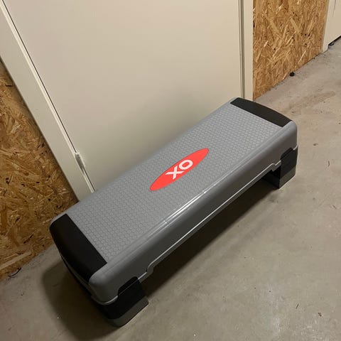 Reebok Stepplattform treningsutstyr i svart farge. Plattformen er laget for å brukes i ulike treningsøvelser som step-up, aerobics og styrketrening. Den har en sklisikker overflate og er designet for å gi stabilitet under trening.