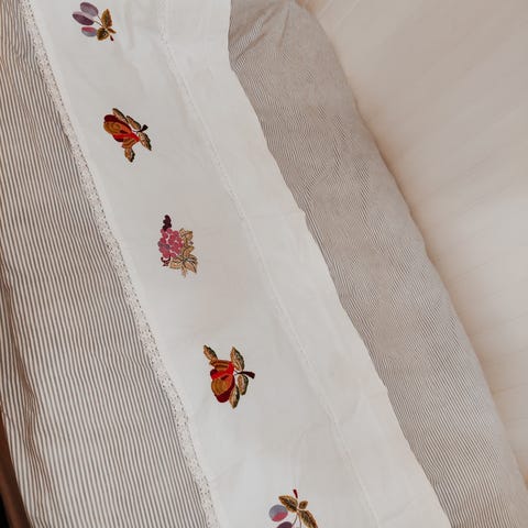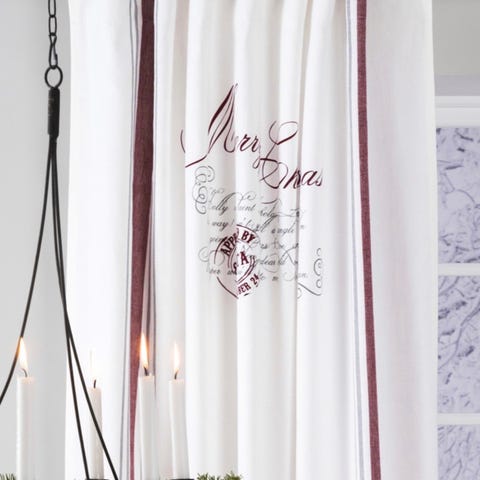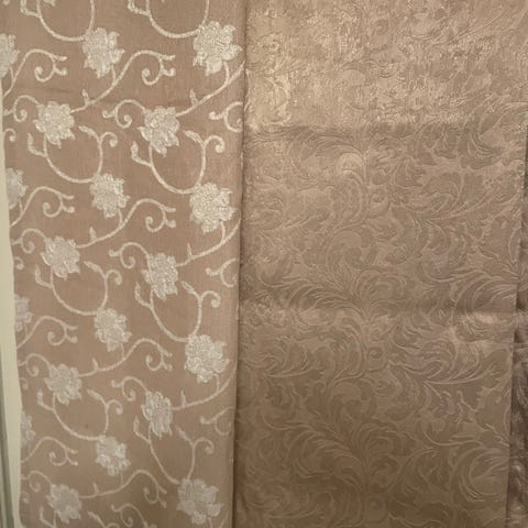 Fine tykke svarte gardiner med gull/sølv trykk, gjennomgående farge.