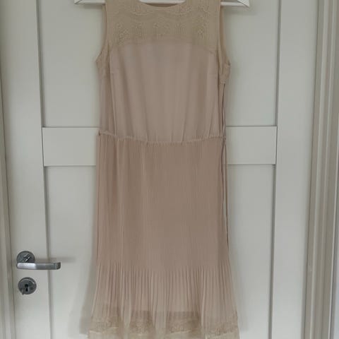 Det er en lang glidelås på siden. Jeg har brukt kjolen en gang på en konfirmasjon.