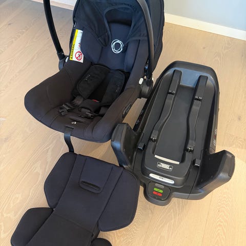 ISOFIX-base, nyfødtinnlegg og adapter medfølger.