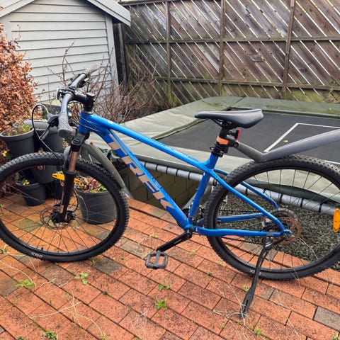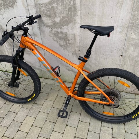 Sykkelen ble kjøpt ny i 2021 og har blitt godt vedlikeholdt. Sist service var i 2023, med bytte av kjede og tannhjul. Bremseklosser og dekk har også blitt byttet før det også. Alt fungerer som det skal, men anbefaler en service da den har stått lagret i kjeller en stund.
