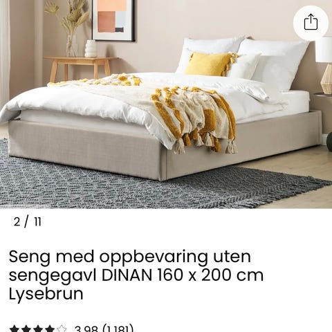 Seng med madrass, overdras er helt ny. 180×200 størrelse, selger den forde den passer ikke alt for stor. Det følger også med 2 nattbord