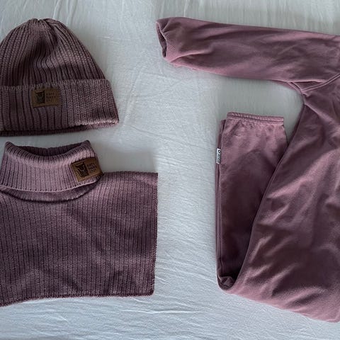Det er noen små hull og merknader. Hullene kan enkelt lappes med lapper fra Kattnakken. Se bilder for merknader. Har strikker.