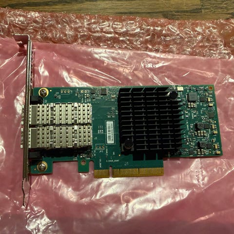 Dette er et Mellanox ConnectX-4 Lx 10/25Gb 2-port SFP SFP28 som støtter opp til 25GbE. Det er dual port, slik at man kan kjøre to connections