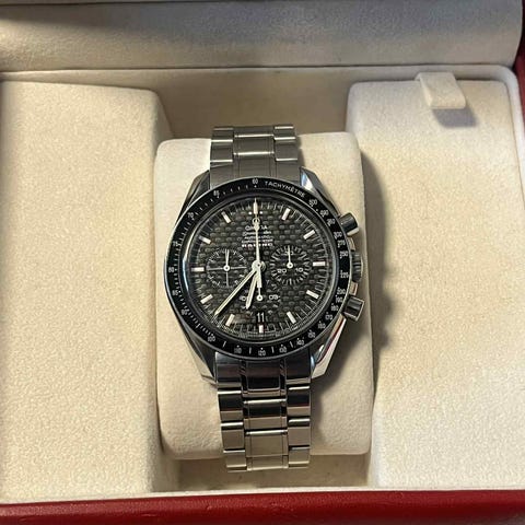 Lekker speedmaster moonwatch selges. Hentet ut fra norsk AD i Desember 2024. Dette er den mest autentiske varianten med hesalite glass. Pent brukt, noe småmerker i glasset, ellers kun hairlines.