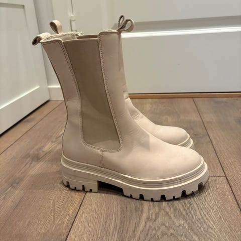 Tamaris boots i beige skinn. Ingen slitasje på sålen. Kun brukt 2-3 ganger. Noen få bruksmerker, men ikke veldig synlige. Str 37.