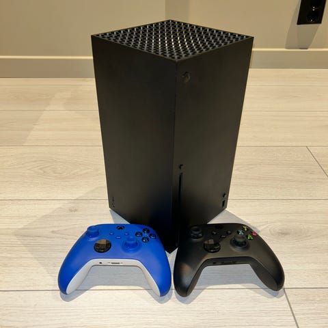 Xbox Series X + 2 kontrollere. En kontroller har litt stickdrift
