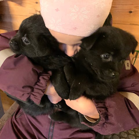Valpene vokser opp i vårt hjem og blir godt sosialisert. De blir vant til dagligdagse lyder, barn, katter og barn mye kos. Vi legger stor vekt på å gi dem en trygg start på livet slik at de blir selvsikre og gode følgesvenner.