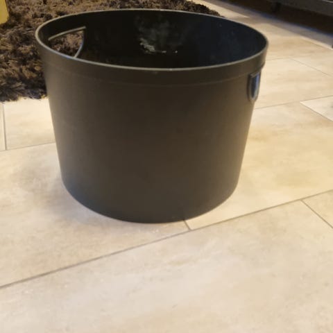 Vedbøtte i stål og peissett i rustfritt stål selges rimelig.