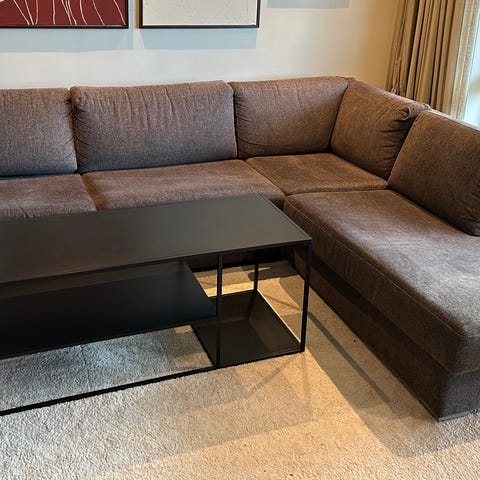 Sofaen kan deles i tre ved henting.