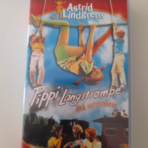 Norsk VHS "Pippi Langstrømpe Langstrømpe" med Inger Nilsson som den suverent sterke jenta som løfter hest, baker kaker på gulvet og jakter på eventyr med vennene Tommy og Annika. "Tenk å være sånn" – episoder med hesten Herrr Nilsson, sjørøvere og masse moro, etter Astrid Lindgrens berømte bøker.