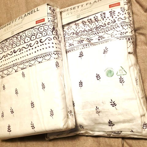 Følger med 2 dynetrekk i sateng i beige og grå(med striper) som vist på bildene