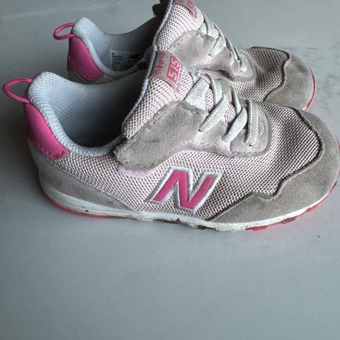New Balance barne-sneakers i størrelse 25. Skoene har en kombinasjon av mesh og syntetisk materiale. Egnet for daglig bruk og utendørs aktiviteter.