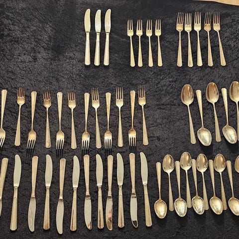 Halling sølvplett dessertsett. Har 11 skjeer.