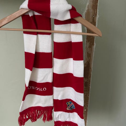 Fotballskjerf kr 100,-. Ubrukt. 1,40 m langt. Kan sendes med posten ved forhåndsbetaling. Porto kr 58,- kommer da I tillegg. Eller Fix ferdig.