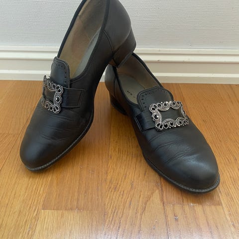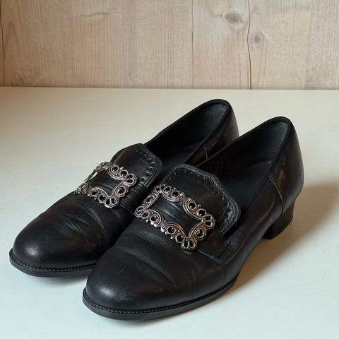 Jeg selger mine bunadsko av merket Folklore. Veldig behagelige på. Godt brukt men fortsatt fine. Størrelse 41, men jeg bruker normalt størrelse 40.