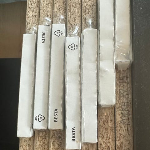 Hvit Bestå hylleplate selges. Har ikke holderne, men disse bestilles gratis som reservedel fra IKEA.no. Pris ferdig prutet. Svarer ikke pruteforsøk.