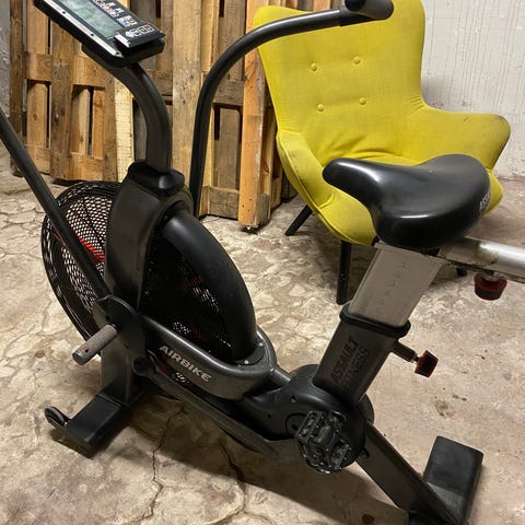 Rogue Echo Bike treningssykkel med stor vifte, svart farge og justerbart sete. Designet for innendørs trening med robuste materialer og solid konstruksjon.