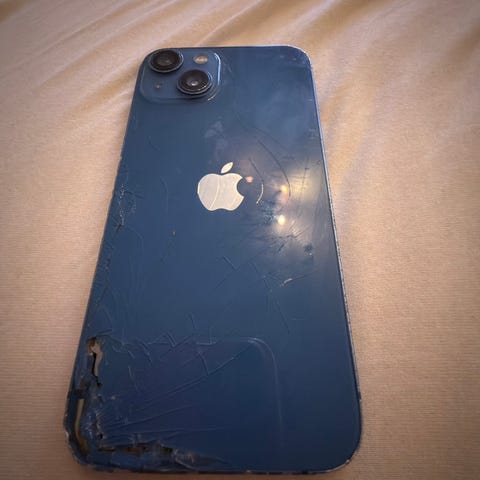 Apple iPhone 13 med 128 GB lagringskapasitet i rød farge. Den er godt brukt og knust skjerm og kamera linse. Men har ingen feil utover det og fungerer fortsatt.