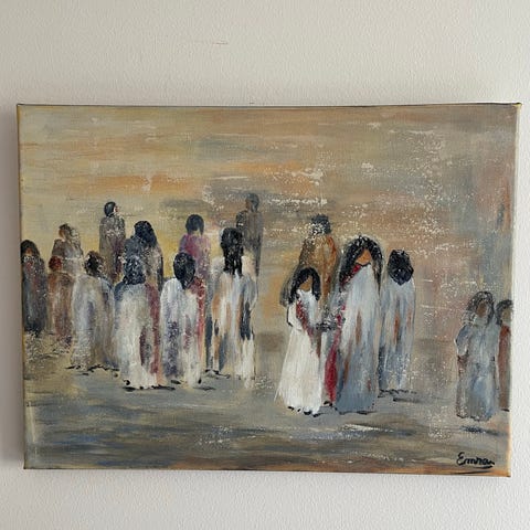 Innramma med kvit passepartout i ei enkel ramme av lys, naturleg Eik.