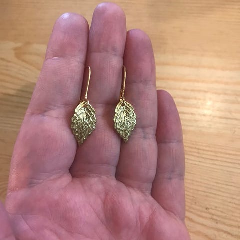 Svak rosa stein , gullbelagte øredobber fra Farmhouse design . Orginalembalasje.