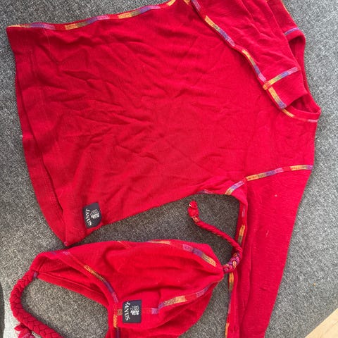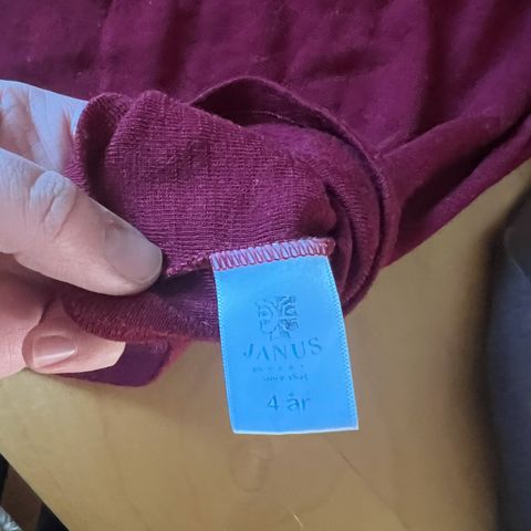 Joha og Janus barneklær i størrelse 104 og 110 i ull. Inneholder 3 overdeler inkludert stripete mønster og en rød jakke med glidelås.