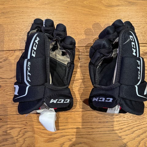 Bauer Supreme S170 og CCM ishockeyhansker i størrelse 8"-20 cm til barn selges. Hanskene er utformet for ishockey og har en svart, hvit og gul fargekombinasjon.