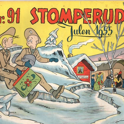 Stomperud Julen 1968 tegneseriehefte med illustrasjoner i farger. Inneholder flere sider med tegneseriestriper som skildrer karakterene i ulike situasjoner, typisk for norsk humor og kultur på 1960-tallet. Sendes som vanlig brev (billigst)