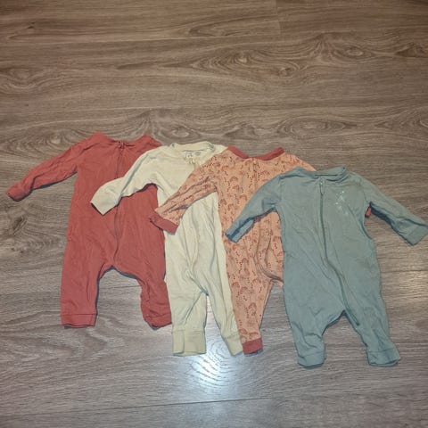 Selger 6 nattdrakter, 2 i ull. Ingen flekker eller hull unntatt den rosa tynnull nattdrakter som har noen små hull ved kragen.