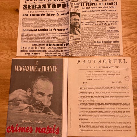 Samling av gamle aviser fra Tønsbergs Blad og magasiner fra Alle Kvinners Blad. Avisene er i papirformat og viser historiske nyheter og artikler. Materialet kan være av interesse for samlere eller de som ønsker å studere historiske medier.