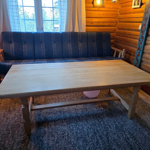 Eldre sofa med bord og stol selges. Stått i hytte, selges som den står.