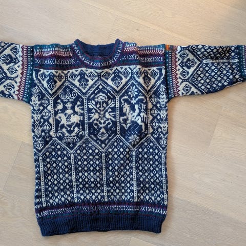 Den originale OL-genseren til vinter-OL på Lillehammer i 1994. Genseren er strikket i 100% ull, har en myk og komfortabel kvalitet, og passer like bra til jeans som til skibukser.