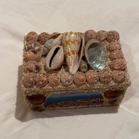 Retro smykkeskrin fra Figgjo flint, gullslitasje på kant etter bruk. 11*4 cm.