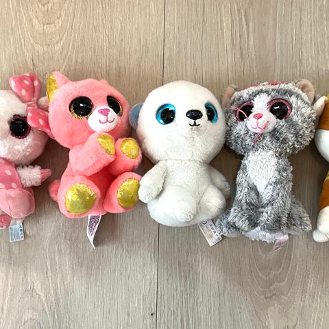Diverse leker selges samlet: kosebamser blant annet Minnie Mus og Sky fra Paw Patrol. Frozen ting, vesker, magnetbokstaver og mye mer. Noen av kosebamsene trenger nok en vask.